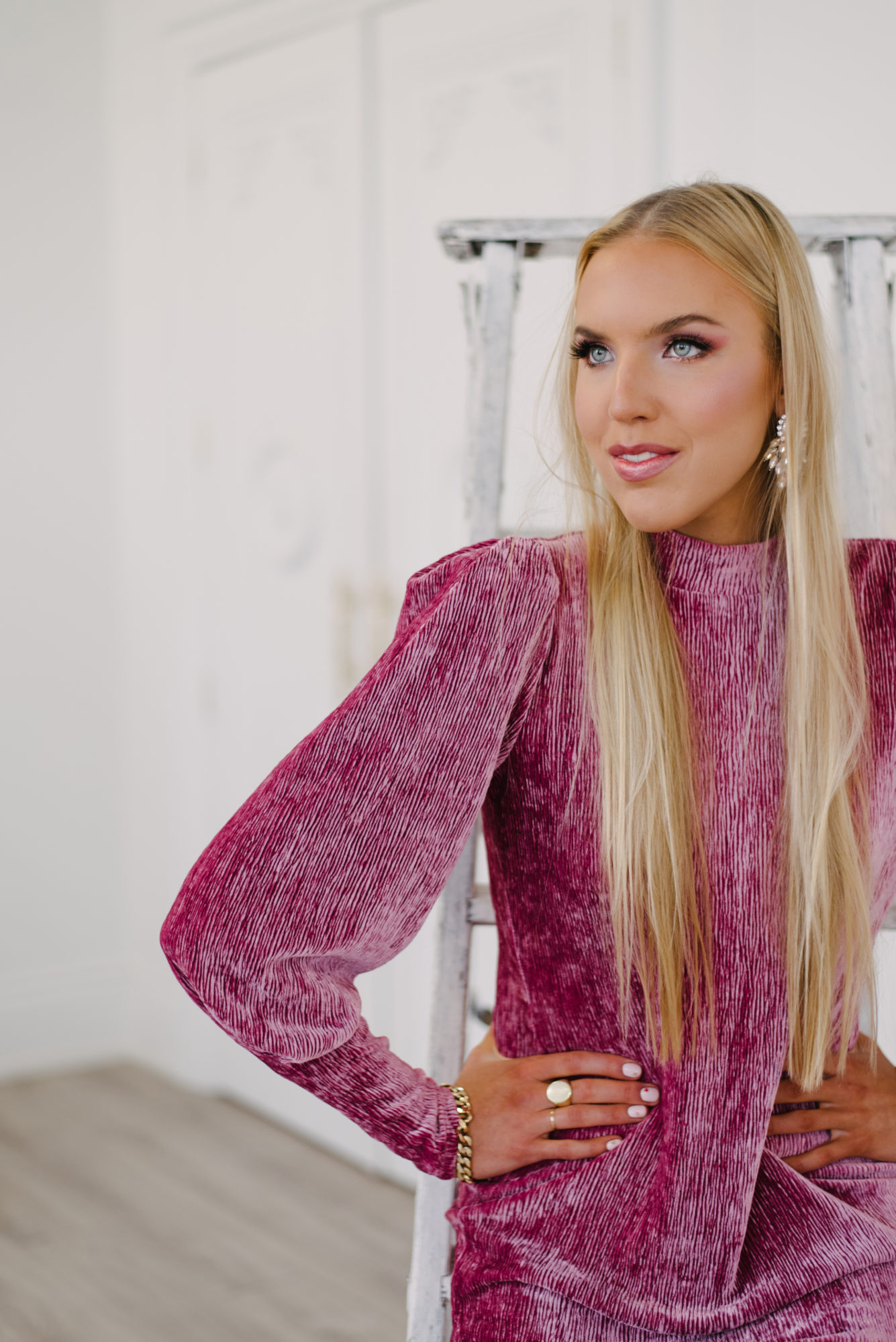 Puff sleeve velour dress