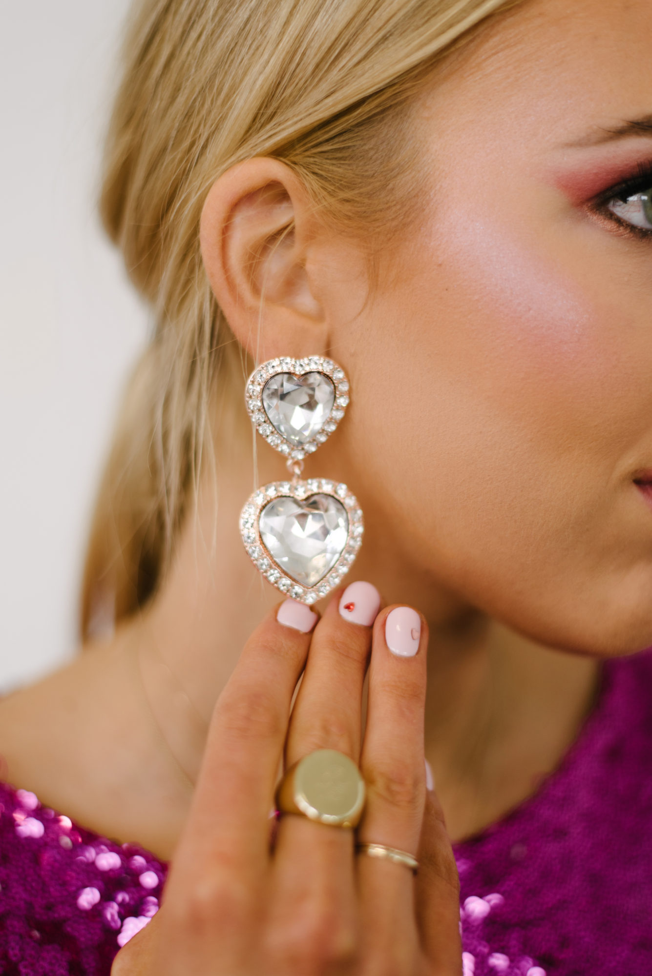 Sequin mini-dresses are bound to create a spark on any date night, especially on February 14th. Add a little more spark by pairing it with shoes that compliment the dress. Pairing sparkle with sparkle will definitely make you noticed when you walk into any room. After all, more is more, right?